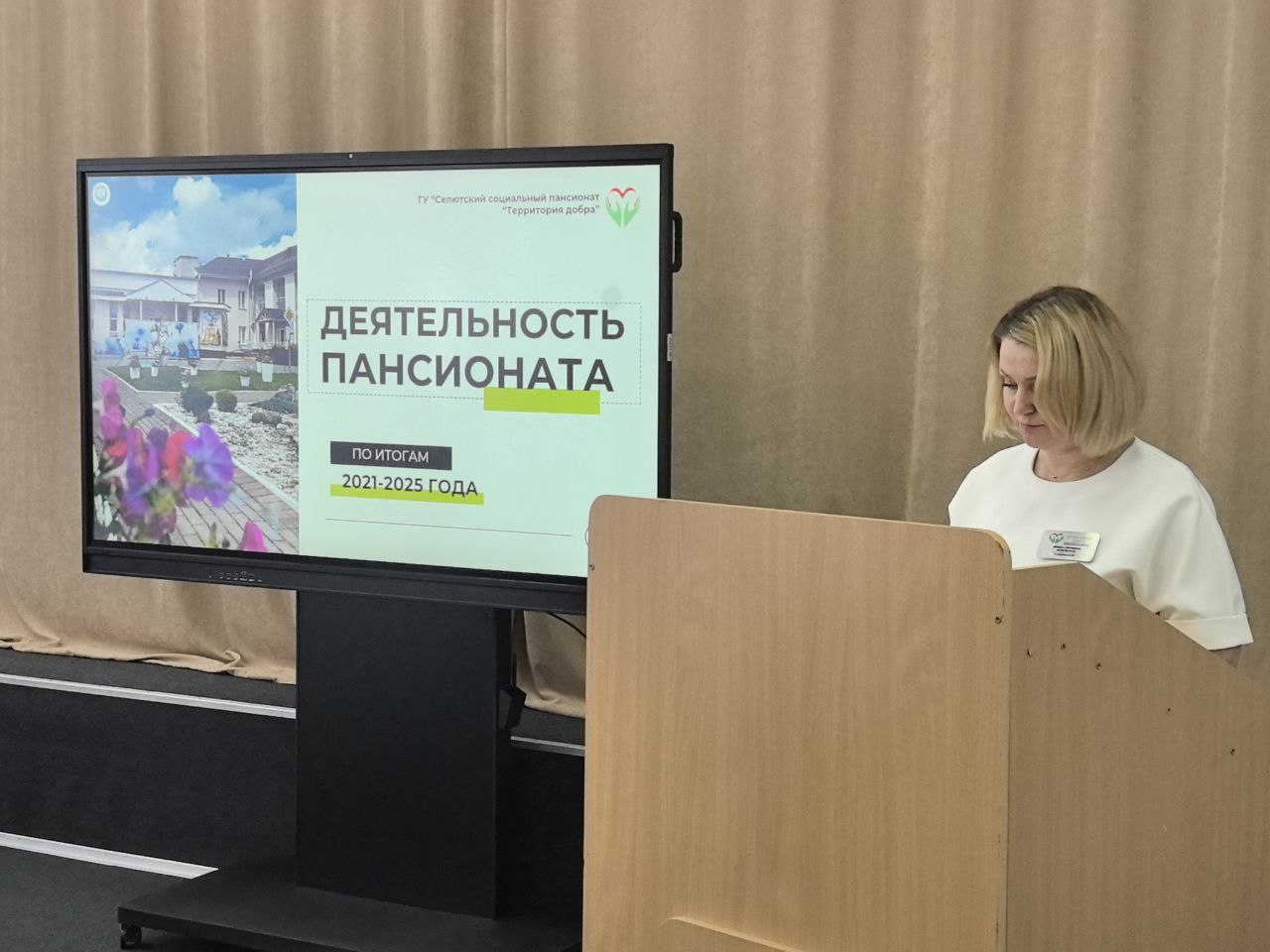 Особенным событием собрания стало участие в качестве почётного гостя Патрушева Александра Владимировича — начальника управления социальной поддержки населения и стационарных учреждений комитета по труду, занятости и социальной защите Витебского облисполкома. Александр Владимирович тепло поприветствовал коллектив, высоко оценил вклад учреждения в систему социальной защиты населения региона, отметил стабильность и профессионализм работы команды. Он также поделился актуальной информацией о приоритетах государственной социальной политики на 2026 год, перспективах финансирования и новых подходах к оказанию помощи различным категориям граждан.